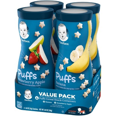Gerber Puffs Banana Cereal Baby Snacks - 148oz. Your little ones birthday. Happy Baby Superfood Puffs are the perfect finger food for crawling babies enriched with nutrients made with whole grains and a yummy way to learn self-feeding.