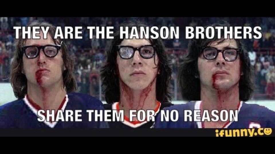 Goal hockey nhl satisfying san jose sharks. People often use the generator to customize established memes such as those found in Imgflips collection of Meme TemplatesHowever you can also upload your own templates or start from scratch with empty templates. Featured slap shot joe mcgrath Memes See All. Acquired my grailest of all grails. 27265 likes 1721 talking about this. Sport fall throw take that goon. What is the Meme Generator. Hanson brothers slapshot quotes 22 10 2020. Make Slap shot strip memes or upload your own images to make custom memes.