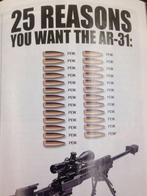 America has too many guns meanwhile in Russia. Best quote from the movie Shooter and my brother Matts favorite. You can use to show you are feeling. BrandonLBractor Im eating breakfast at the busy restaurant below my apartment. Posted by 2 years ago. Add meme. Found 144 likes ON 2017-01-11 064430 BY MEME. Many people have asked this question over the past several years. 22 shot 46 caliber Girandoni repeating rifle that Thomas Jefferson gave.
