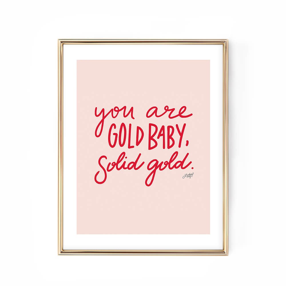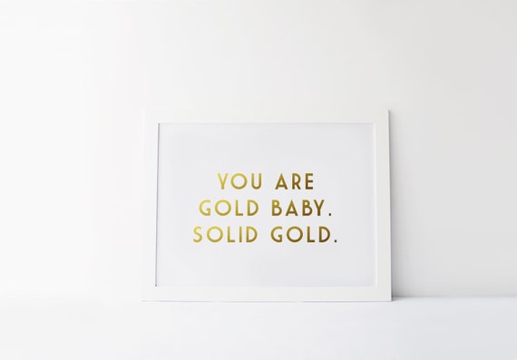 You are gold baby solid gold. Aluminium Silver A5 Frame. You Are Gold Baby Solid Gold 1. A5 to A3 prints are professionally printed onto the finest quality 300 gsm matte stock and will arrive cellophane wrapped with a protective card.