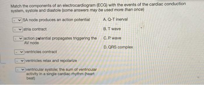 Match the components of the cardiac conduction system with their description. Drugs that block nerve conduction when applied locally to nerve tissue in appropriate concentrations. Match the following muscles with their location in the body. Pathology of Cardiac Disease Screencast By Ann Jadin In this animated activity learners examine the symptoms of four cardiac conditions.