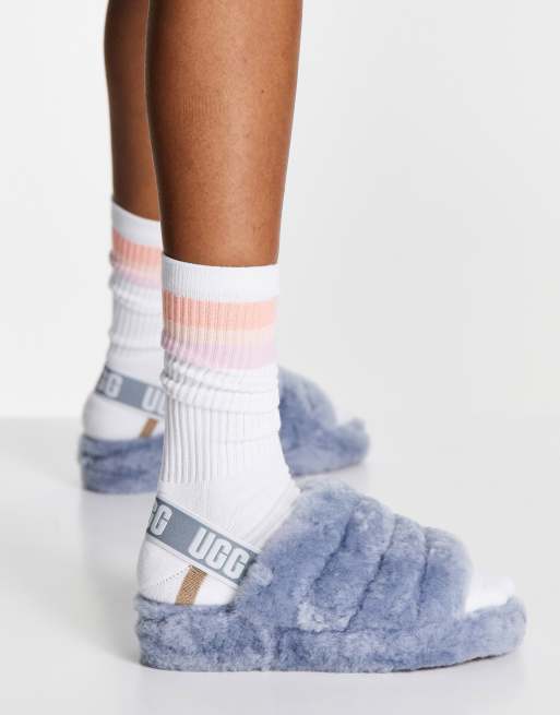 Incorporating a durable lightweight sole to increase cushioning and traction. The interior is lined in sheepskin for superior comfort whilst a moulded rubber. Uggs Womens Fluff Yeah Slide Ash Fog UGGS.