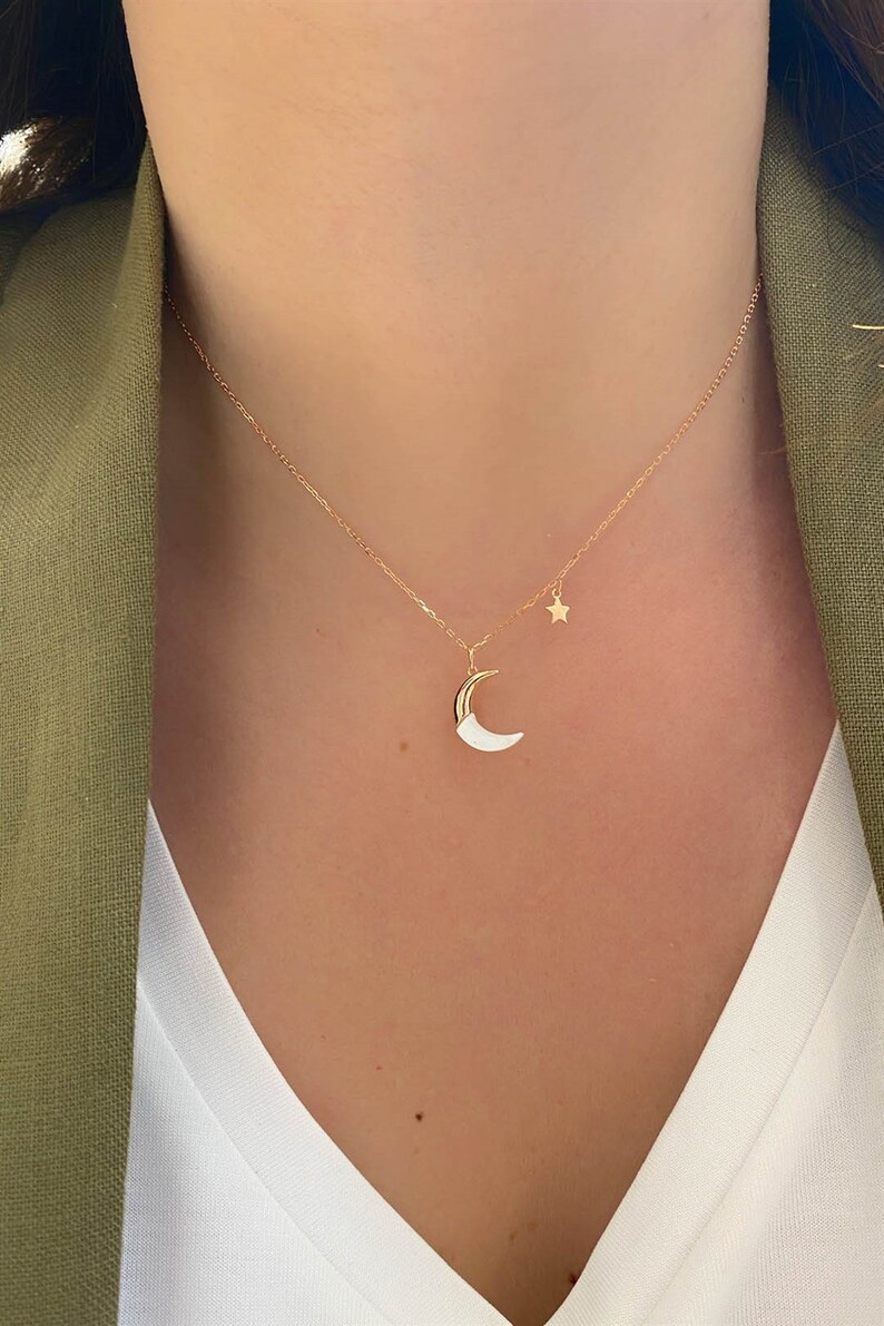 Everything starts with a dream. - Mother of Pearl Moon Pendant - Signature Tula Blue hand-spun ROPE - 100 waterproof. Luminous Mother Of Pearl Crescent Necklace. Beautiful and high qualityPerfect for layering or wearing as-is for a little simplicityItem Details. This 18K gold crescent moon necklace is set with diamonds and freshwater pearl making it a perfect statement piece. Each original piece goes through a certification process to guarantee best value and premium quality. Shimmering Mother of Pearl Crescent Moon on 14kt Gold Filled Chain. Put on your Crescent prepare to feel calm grounded totally protected. Mar 24 2021 - The world is your oyster you are the pearl Our absolutely stunning Mother-of-Pearl Crescent Necklace is cute dainty and one of our most popular JM pieces.