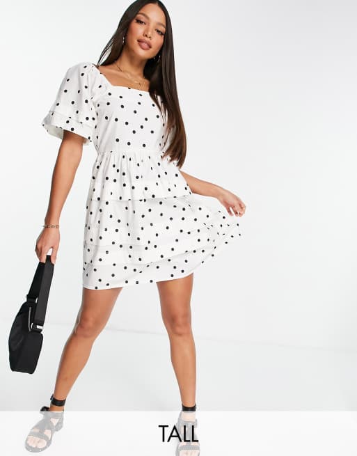Polka dot puff sleeve dress. Model Height - 5ft 7. Read reviews and browse our wide selection to match any budget or occasion. The clip dots tiered ruffles square neck and square back make this dress perfect for pairing with knee-high boots and a Panama hat.